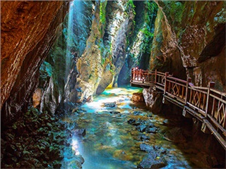 10月2日,經過升級打造的朝陽地縫景區重新開放。地縫整體呈倒“V”字型,平均深度近200米,頂部最窄處只有3米,是中國喀斯特地貌最奇異的“地縫地貌”類型。這里常年恒溫19℃,是個“沒有冬天更沒有夏天”的地方。景區共分朝陽地縫游覽區、愛情坡生態農業科普長廊游覽區兩部分,游道總長為5公里,游程大約需2小時。
